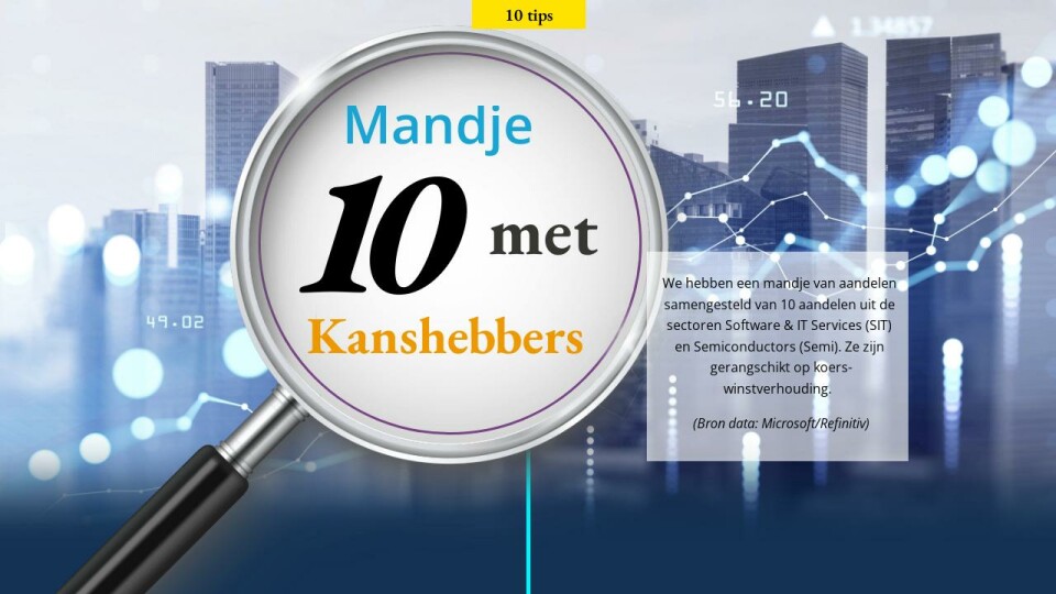 We hebben een mandje van aandelen samengesteld van 10 aandelen uit de sectoren Software & IT Services (SIT) en Semiconductors (Semi). Ze zijn gerangschikt op koers-winstverhouding.