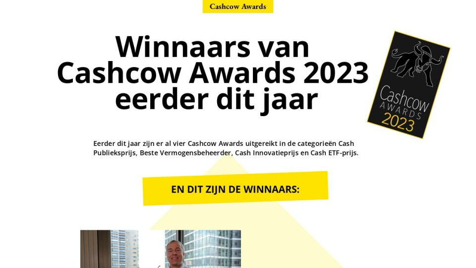 Eerder dit jaar zijn er al vier Cashcow Awards uitgereikt in de categorieën Cash Publieksprijs, Beste Vermogensbeheerder, Cash Innovatieprijs en Cash ETF-prijs.