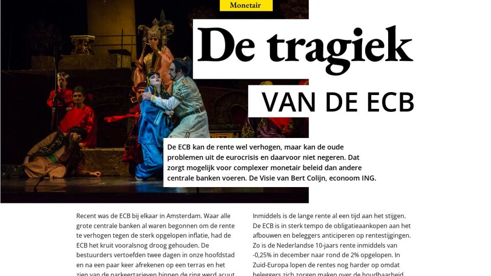 De ECB kan de rente wel verhogen, maar kan de oude problemen uit de eurocrisis en daarvoor niet negeren. Dat zorgt mogelijk voor complexer monetair beleid dan andere centrale banken voeren. De Visie van Bert Colijn, econoom ING.