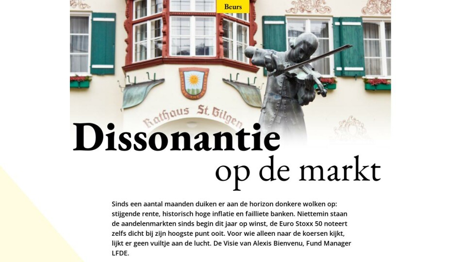 Sinds een aantal maanden duiken er aan de horizon donkere wolken op: stijgende rente, historisch hoge inflatie en failliete banken. Niettemin staan de aandelenmarkten sinds begin dit jaar op winst, de Euro Stoxx 50 noteert zelfs dicht bij zijn hoogste punt ooit. Voor wie alleen naar de koersen kijkt, lijkt er geen vuiltje aan de lucht. De Visie van Alexis Bienvenu, Fund Manager LFDE.